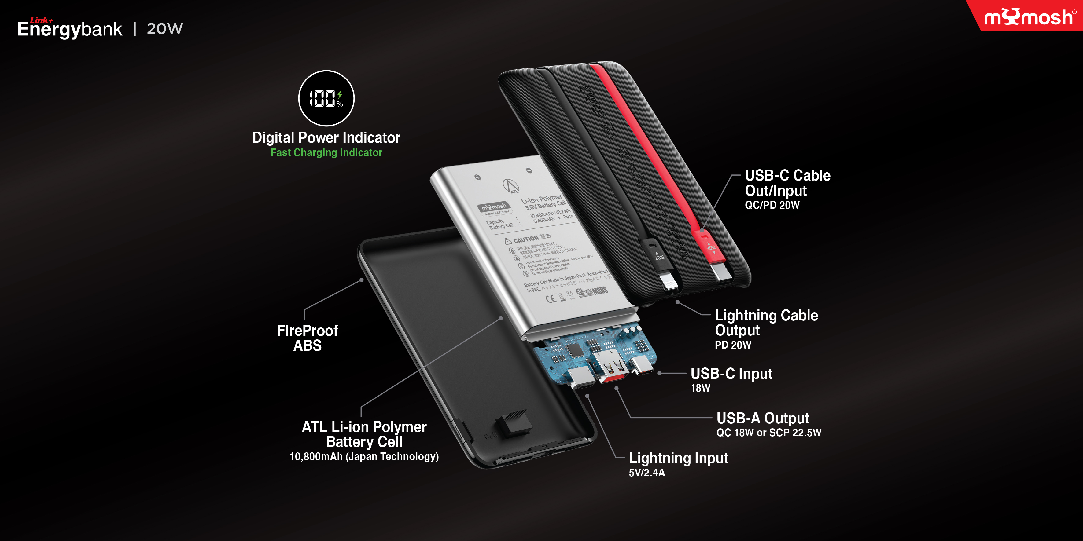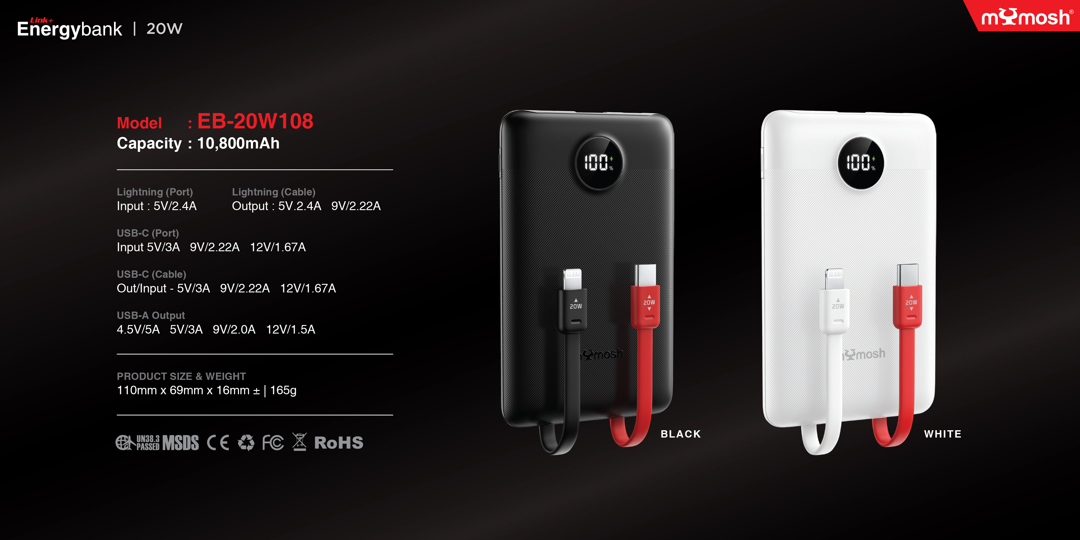 • Model: Link+ EnergyBank 20W Built-in cable 10,800mAh