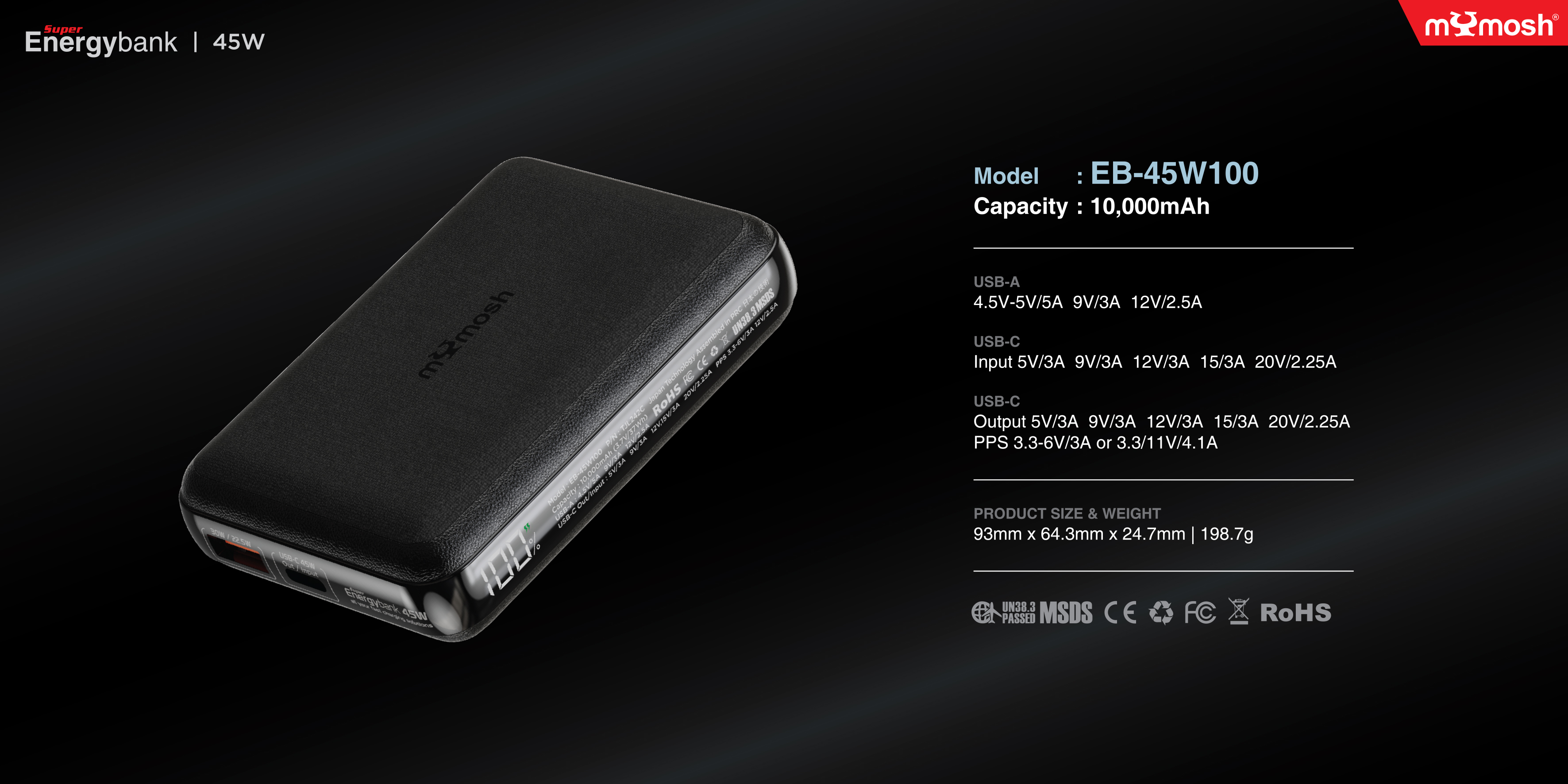 • Model: Super Energybank 45W USB-C & USB-A 10,000mAh