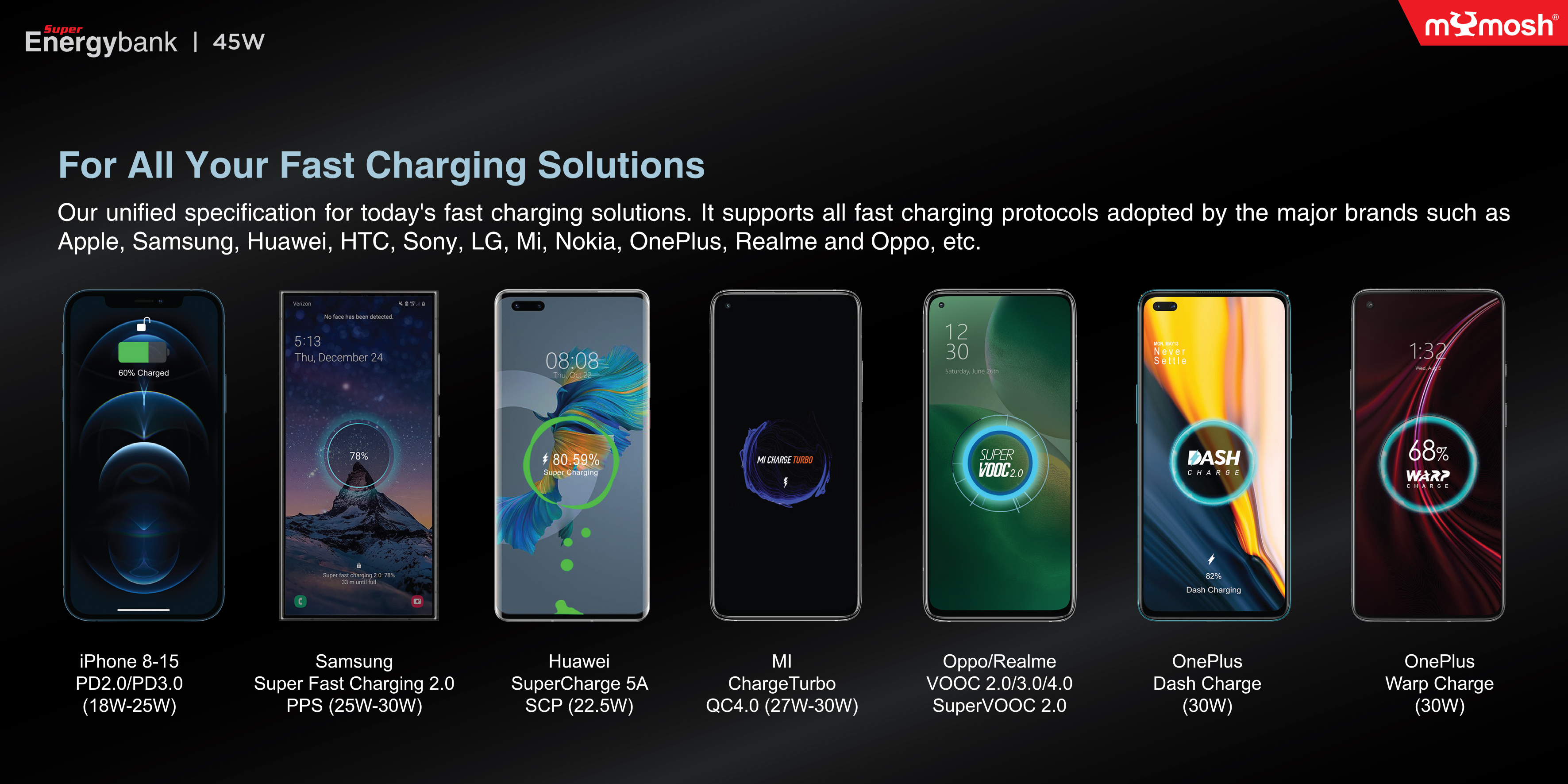 • USB-A | QC/ SCP/ DASH/ WARP/ S-VOOC 30W