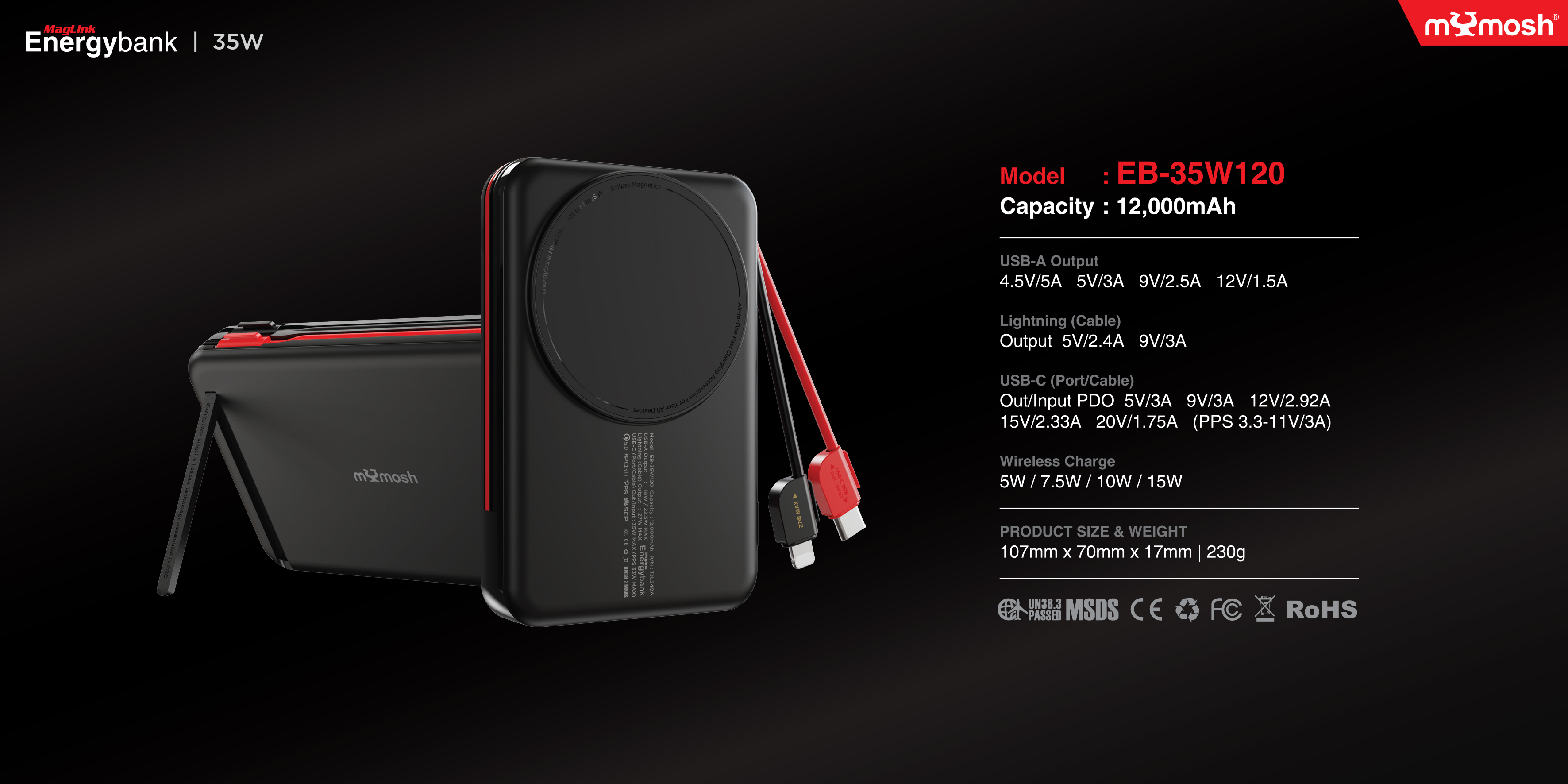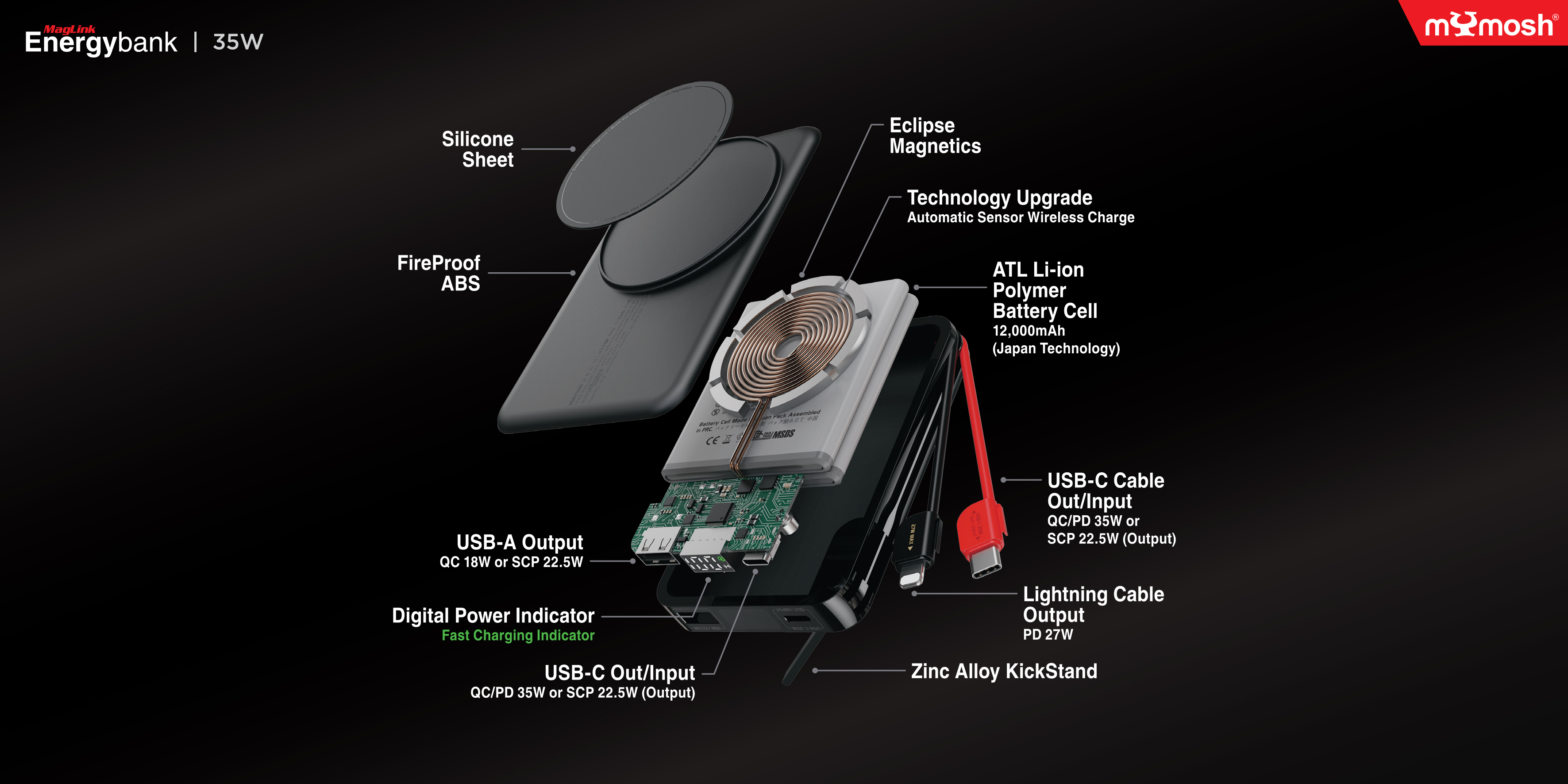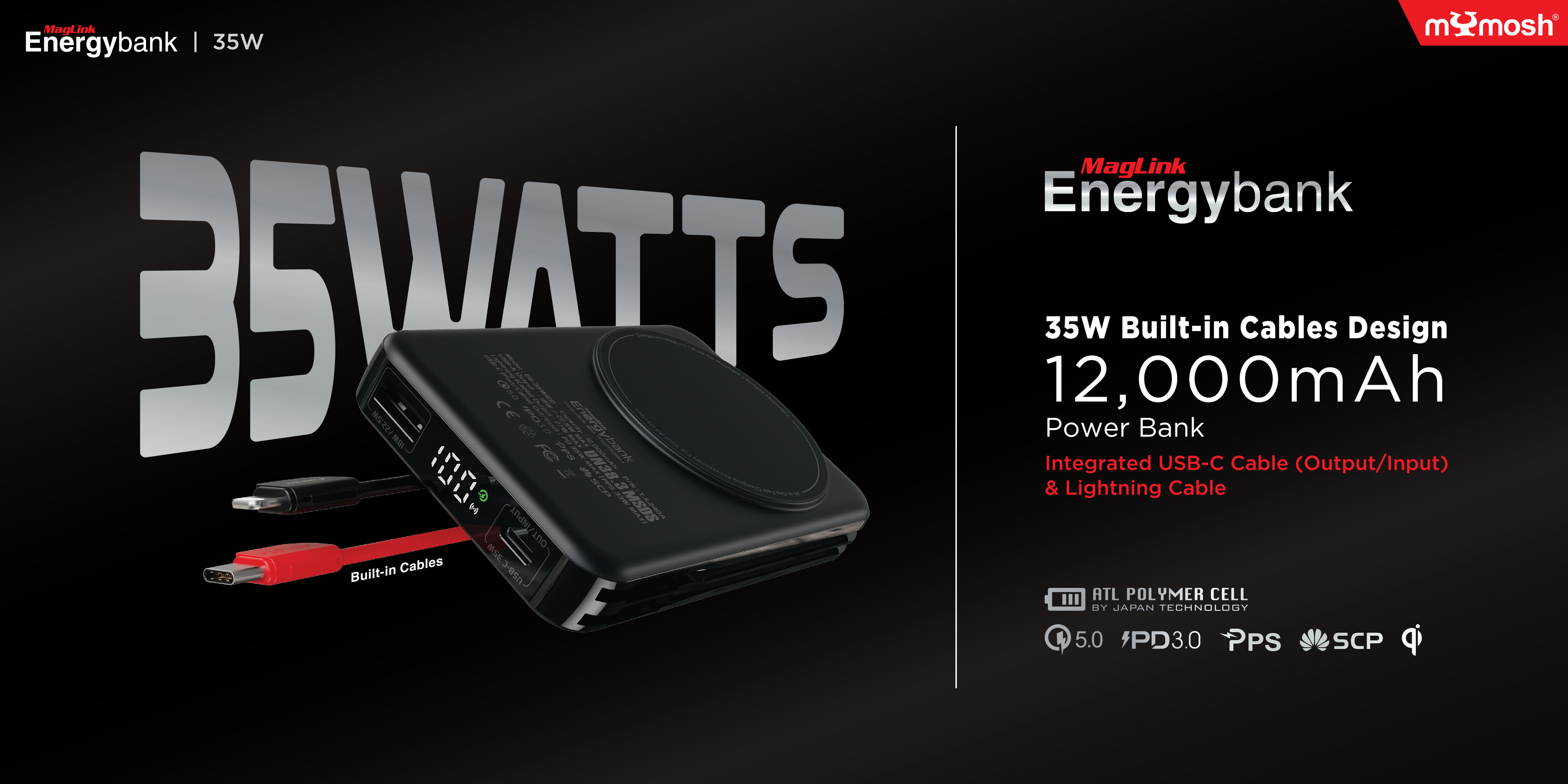 - Model: MagLink Energybank 35W Built-in Cable Design 12,000mAh