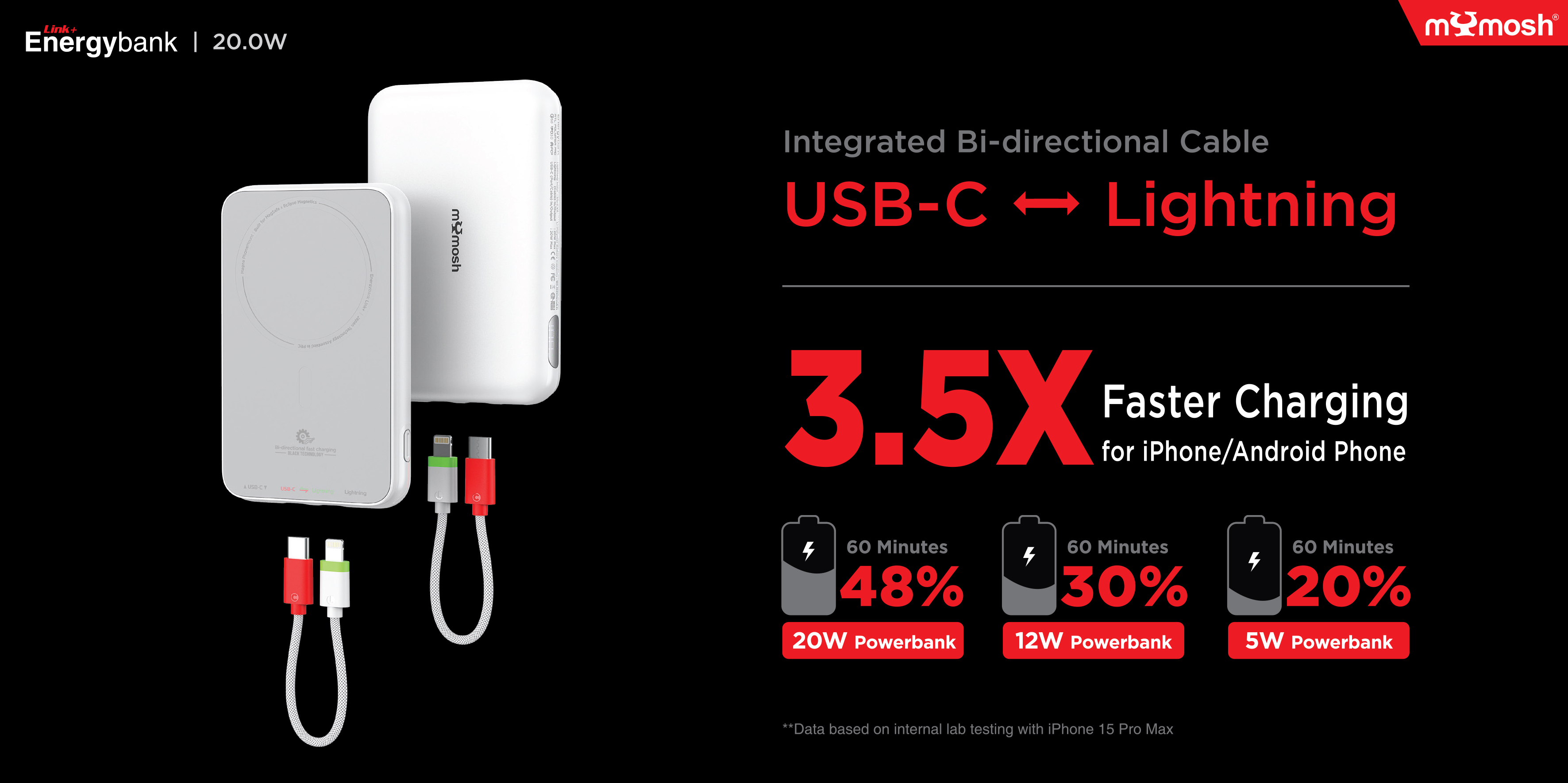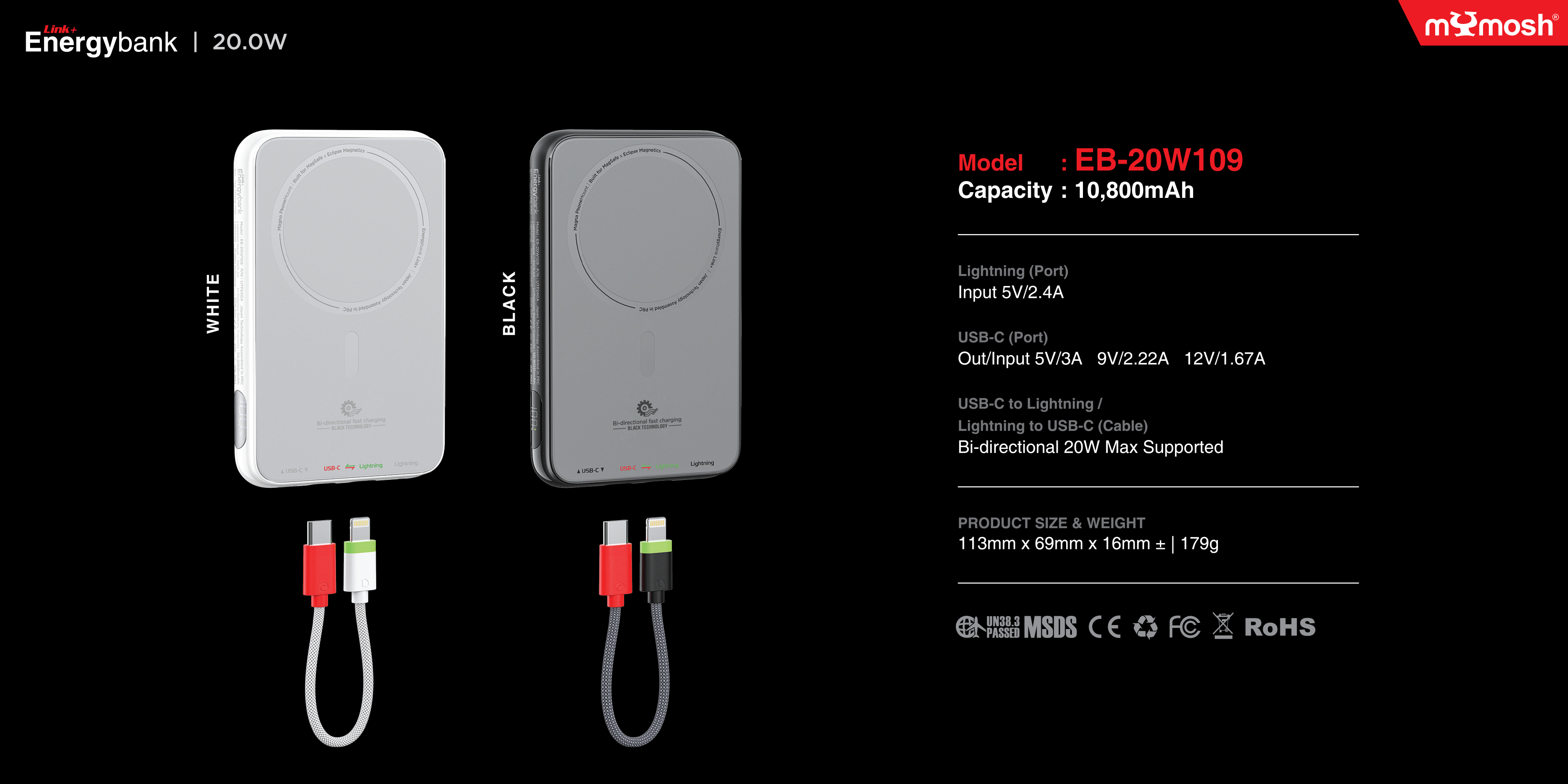 - Model: Link+ EnergyBank 20W Built-in cable 10,900mAh
