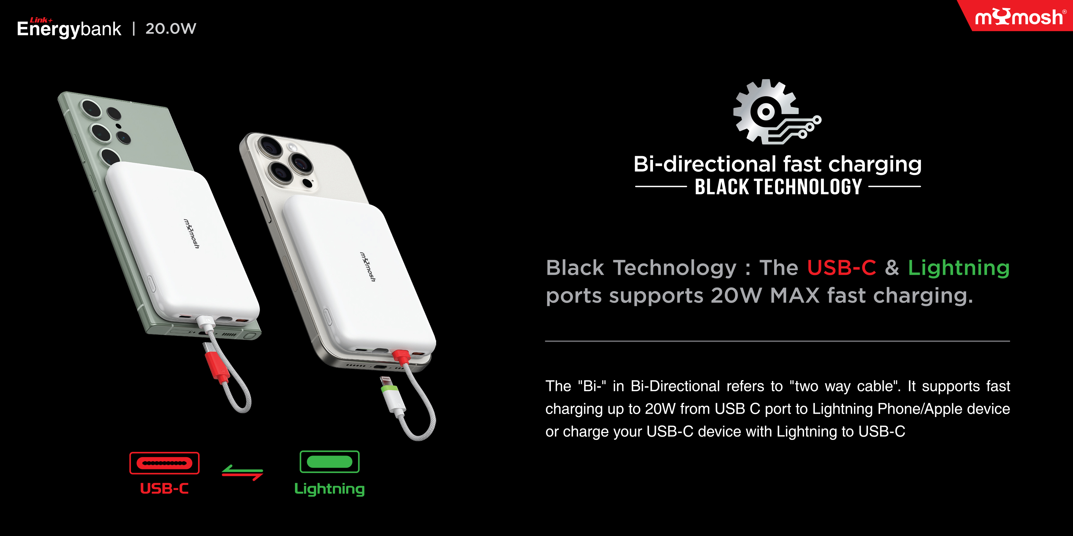 - *USB-C TO LIGHTING/ LIGHTNING TO USB-C (CABLE): Bi-Directional 20W Max Supported