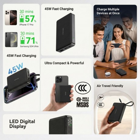 - Premium Build: Black PU leather texture with a clear LED digital battery indicator.