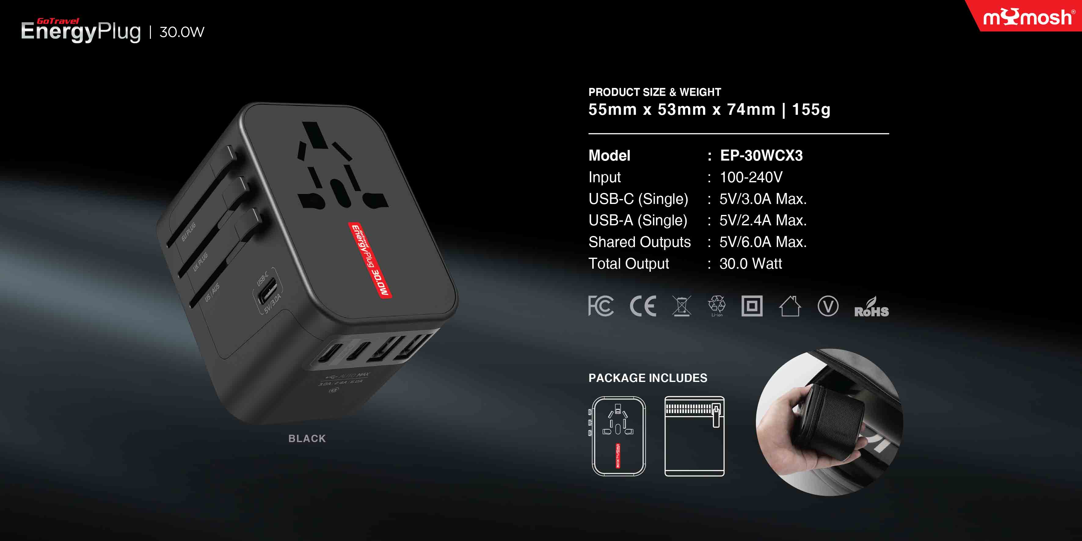 • Model: Go Travel EnergyPlug 30W Three USB-C International Wall Charger